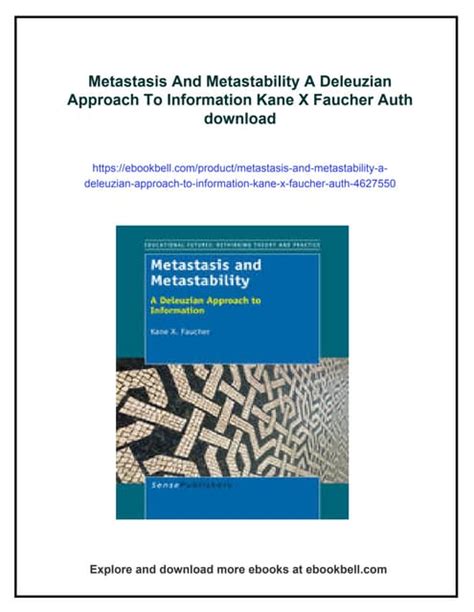 Metastasis And Metastability A Deleuzian Approach To PDF textbook refers back to the digitized, interactive functionality of clever textbook content displayed in the scientific and intuitive Visible, audio, graphic, and text through electronic media examining textbook. Considering that the appearance of the world wide web, quite a few common functions are actually transferred to the net. The identical goes for Metastasis And Metastability A Deleuzian Approach To book.